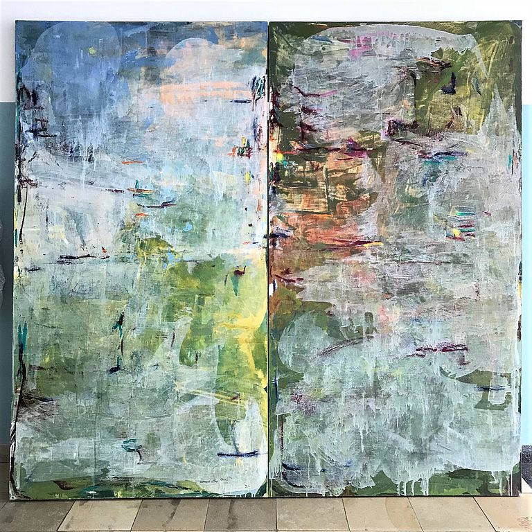 200 x 200 cm, Diptychon, oil and acrylic on nettle, 2005/2016